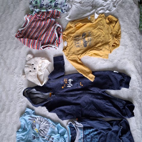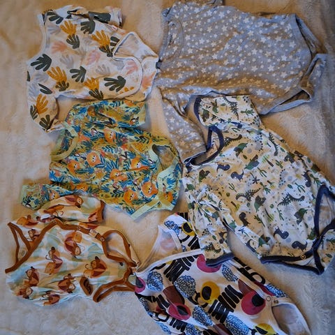 Kolmet housut ja kaksi pitähihaista bodya, kolmet sukat.