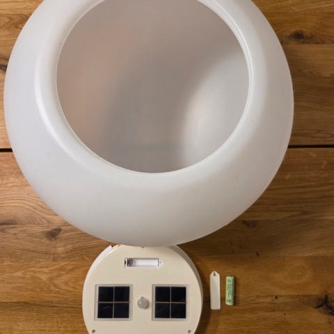 Annetaan 2 kpl clasulta ostettuja aurinkokennovalaisimia. Isomman halkaisija noin 28 cm ja pienemmän noin 12 cm. Toimivat hyvin. Olleet lasitetulla parvekkeella.