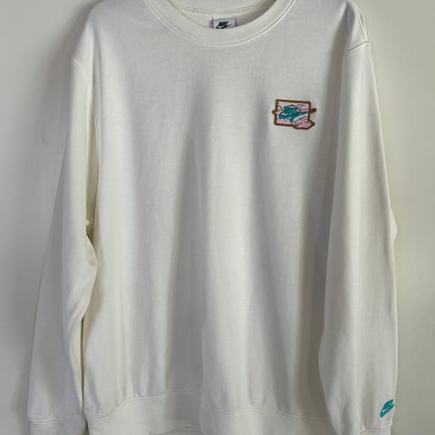 Myydään hyväkuntoinen Niken collegepaita, hihassa pieni purkauma.