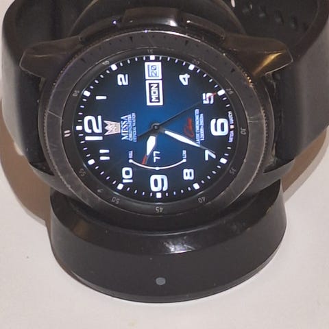 Samsung älykello unisex-käyttöön. Kellossa on pyöreä kellotaulu ja digitaalinen näyttö, jossa useita kellotauluvaihtoehtoja. Ranneke on nahkaa, tumman sävyinen kontrastitikkauksilla. Kellon mukana tulee lataustelakka ja verkkovirtalaturi. Sopii yleiskäyttöön arjessa ja liikunnassa sekä yhteensopivien Android-laitteiden kanssa, mikäli käyttäjä niin määrittää asetuksista.