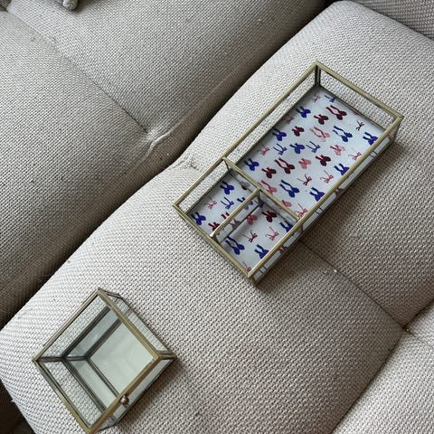 Italialainen korurasia kauniilla kukkakoristeilla. Kultaus reunuksesta vähän kulunut. Korurasia on 45 vuotta vanha. Korkeus kannen kera on 12 cm; ja ilman kantta 6 cm. Halkaisijaltaan korurasia on 9 cm.