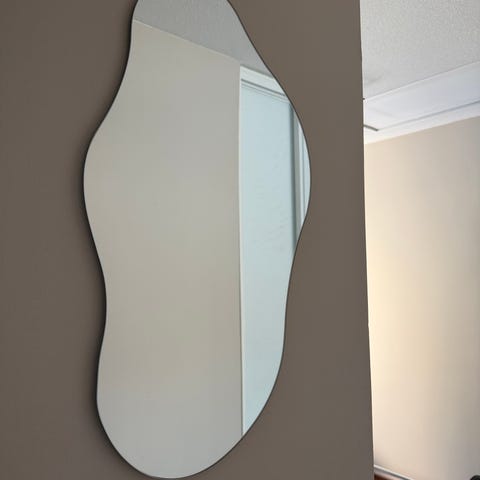 Valkoinen, vartalopeili, korkeus 158cm ja leveys 40cm.