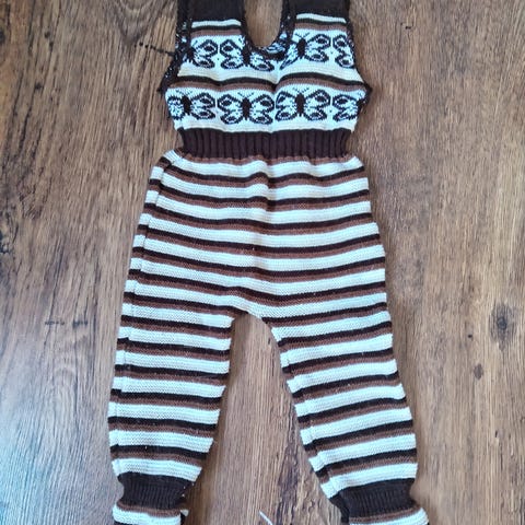 Tutta merkkiset oranssit ja ruskeat potkuhousut. Haaroissa nepparit. Olkapäällä tuplaneppari. Kokolappu ei oikein näy enää, mutta muistaakseni on koko 68.