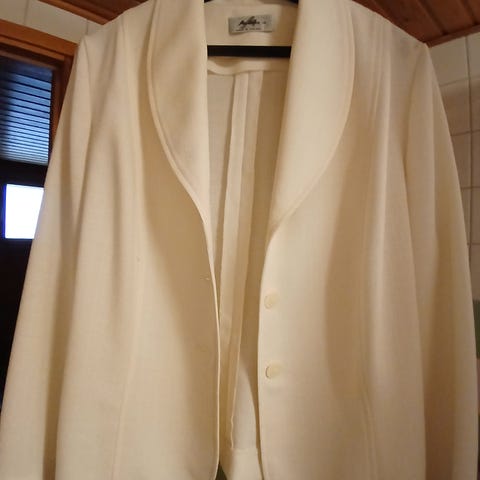 Siistikuntoinen musta naisten jakku /bleiseri, jossa naisellisempi muotoilu. Sävy täysin musta (osa kuvista on otettu eri valaistusasetuksilla, jotta vaatteen muoto erottuisi paremmin). Mukana yksi varanappi. Materiaali miellyttävää viskoosisekoitetta, joka venyy hieman. Pesu 40 asteessa. Vastaa kokoa 44.