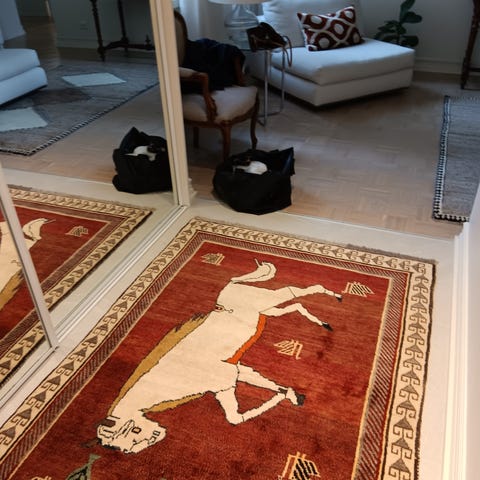 Uzbekistanissa käsinkudottu matto. Pientä virhettä kudonnassa ja ei niin kirkkaat värit, kuin kuvassa, saa tulla katsomaan ennen ostopäätöstä. 360cmX220cm