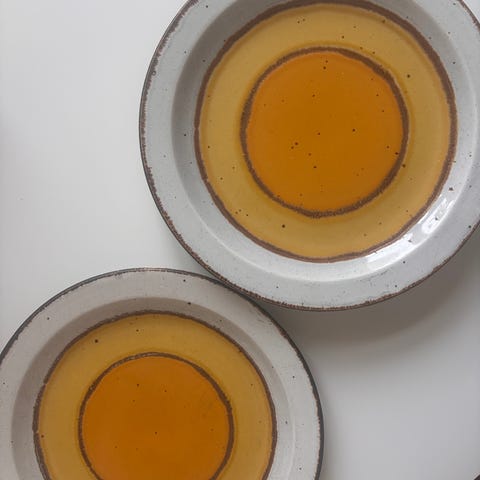Kivikeraamiset kulhot, vintagea 1960-luvulta. Merkki on 222 Fifth (genuine stoneware).