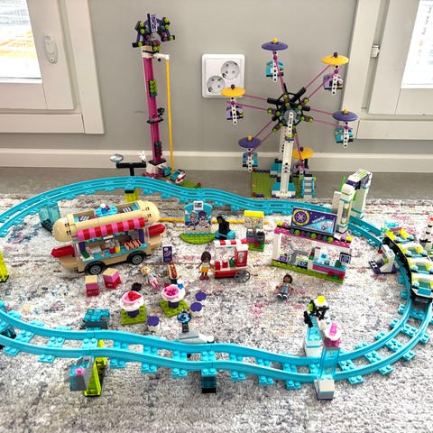 LEGO Friends 41352 rakennussarja, jossa kilparata-aiheinen kokonaisuus. Settiin kuuluu palkintotorni pokaaleineen, maaliportti, lähtöalue sekä ajoneuvot kuljettajineen ja lemmikkeineen. Autoilla on lähtötelineet, joilla autoille saa annettua vauhtia.