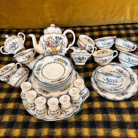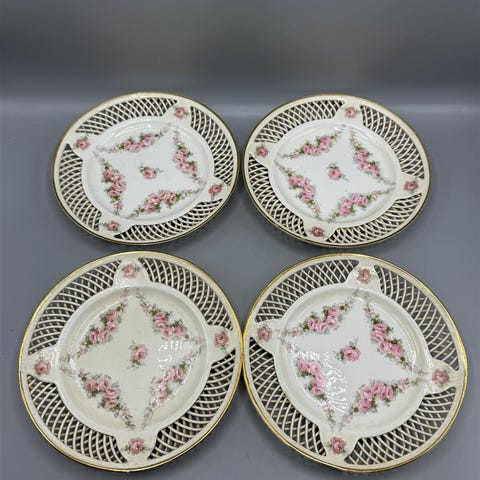 Spode’s ruokalautaset, 4 kpl. Kermanvalkoiset. Yhdessä pientä kulumaa ja toisessa erittäin pieni lohkeama sivussa.