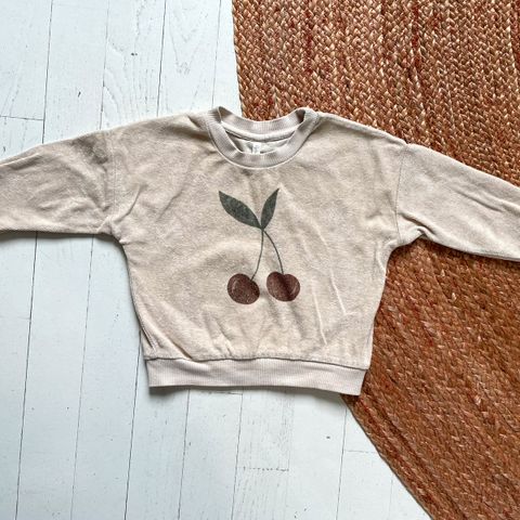 Tiny Musen beige collegepuku koossa ’2v.’ eli sanoisin 86/92. Vähän käytetty, siistissä kunnossa, mutta nyt huomasin paidan takaosassa muutaman pienen punaisen tahran. En ole varsinaisesti yrittänyt puhdistaa niitä.