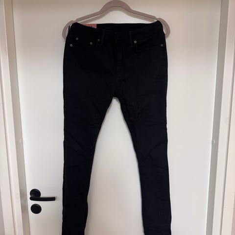 Siistikuntoiset Acnen mustat farkut. Kangas on joustavaa denimiä.