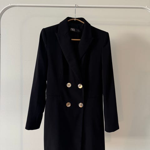 Myydään musta, pitkä jakku, joka on valmistettu hiukan läpikuultavasta kankaasta. Jakku laskeutuu kauniisti. Jakussa on musta - kultaiset napit. Koko XL. Mitat kuvissa paitsi pituus, joka on 78cm.