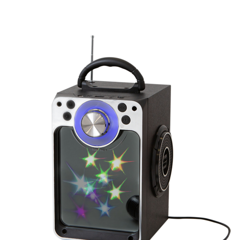 Toimiva Karaokesoitin.myydään pois vähäisen käytön vuoksi. Mukaan tulee 2 kpl mikrofoneja/piuhat,virtajohto ja kaukosäädin.