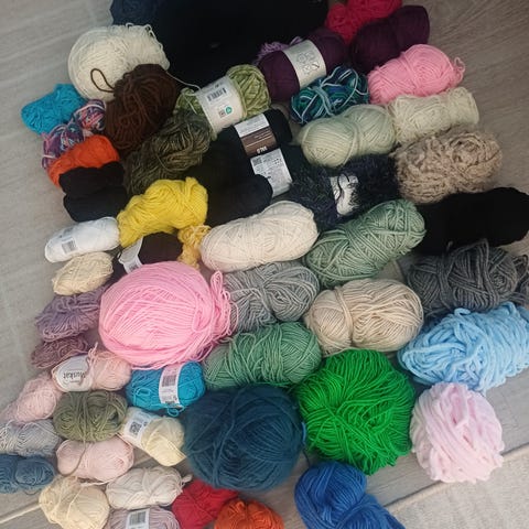 4 laatikollista erilaisia lankoja. Laatikot saa mukaan