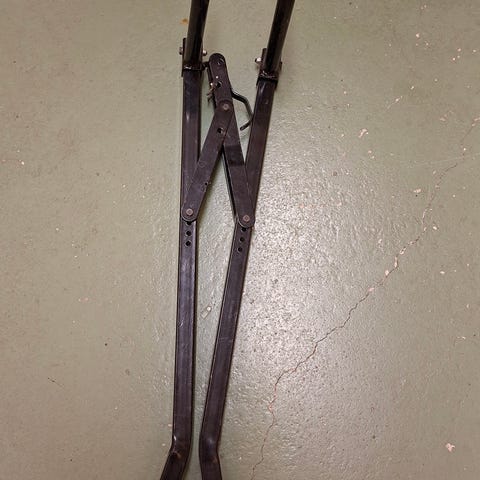 Matkailuautoon polkupyörien kuljetusteline kiinnitysosineen. Nouto.