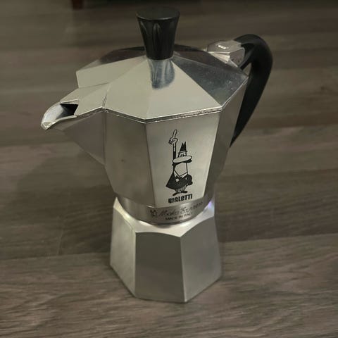 Kaksi kertaa käytetty, uutta vastaava Bialetti Venus kuuden kupin espressopannu.
