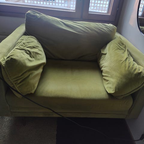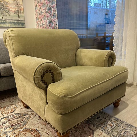 iso kokoinen nojatuoli rusehtavan vihreän värinen