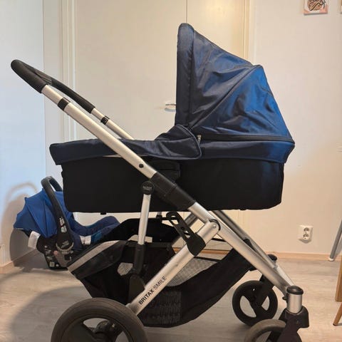 Britax Smile 2 kokomustat yhdistelmävaunut. Settiin kuuluu vaunukoppa, ratasosa, runko, jalkapeite ratasosaan ja sadesuoja kopalle. Myös ohjevihkot ja kopan alkuperäinen laatikko on tallessa. Säilytetty kuivassa ja lämpimässä. Tällä hetkellä säilytyksessä koirataloudessa, koirat ei ole ollut samassa tilassa tai kontaktissa vaunujen kanssa, mutta täyttä eläinpölyttömyyttä ei voi taata.