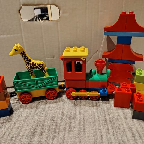 Settiin kuuluu värikäs veturi, vaunu, norsu, keltainen sateenvarjokappale sekä yksi LEGO DUPLO -hahmo. Osat ovat suurikokoisia ja sopivat pienille lapsille, jotka harjoittelevat rakentamista ja leikkivät junaleikkejä. Yhteensopiva muiden LEGO DUPLO -osien kanssa.