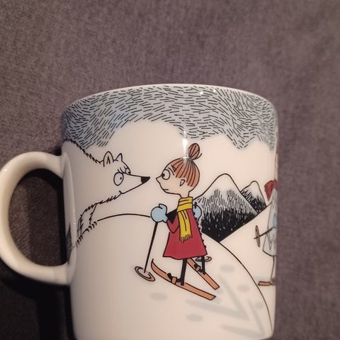 Hiihtäen kera herra Virkkunen muki +kulho. Uusi setti tarroilla. Kulkeutuu satunnaisesti Kuopioon.