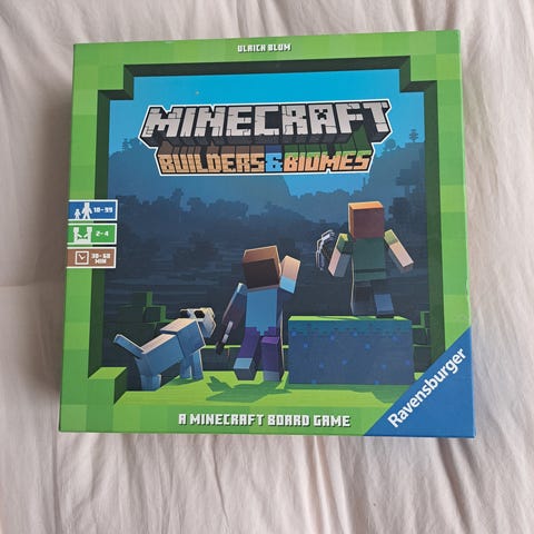 Ravensburger Minecraft Builders & Biomes lautapeli. Minecraft-teemainen perhepeli, jossa pelaajat rakentavat maastoa, keräävät resursseja ja taistelevat hirviöitä vastaan. Peli sopii useammalle pelaajalle ja sisältää pelilaudan, laattoja, kortteja sekä pelihahmoja. Ikäsuositus ja tarkempi pelaajamäärä löytyvät pakkauksesta. Paketti on aukaistu mutta pelaamaton.