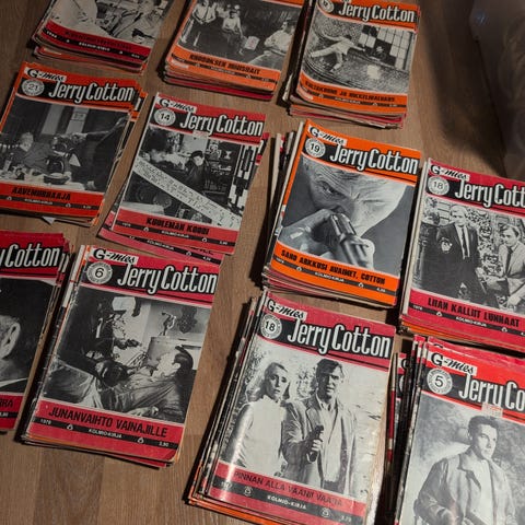 1kpl Jerry Cotton 1964, 11kpl 1970- luvulta ja 14kpl 1980- luvulta. Ikäisikseen ok kuntoiset lehdet.