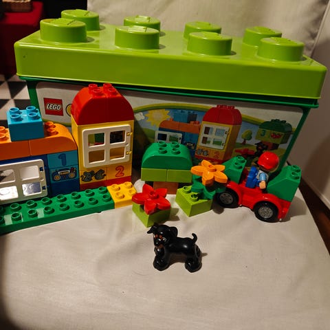 LEGO DUPLO eläin- ja maatilalelusetti. Kokonaisuus sisältää erilaisia rakennuspalikoita, liukumäen, puun, pienen rakennelman katolla, aidan osia sekä useita eläinhahmoja ja muutamia ihmishahmoja. Mukana on myös pieni ajoneuvo ja piknik-alusta. Sopii pienten lasten rakentelu- ja roolileikkeihin LEGO DUPLO -palikoiden kanssa.