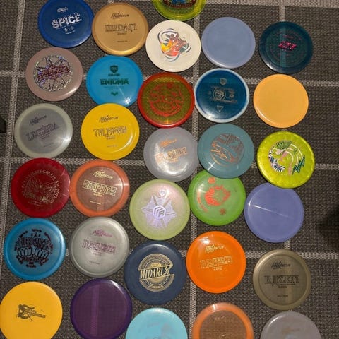 Frisbeegolf kiekkoja muutama sata kpl 8 kuvaa vikassa kuvassa spessuimmat!