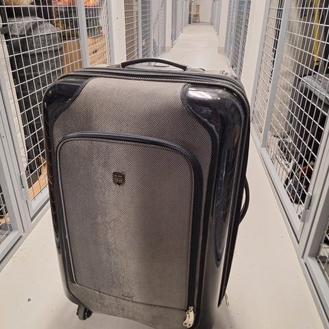 Myydään kuvan mukainen ehjä ja siisti, mutta maailmaa nähnyt kaksipyöräinen matkalaukku.