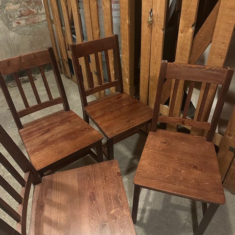 Myydään 4kpl ruokapöydän tuoleja. Yhteensä 20e kaikki. Kulumaa tai käytön jälkiä on, mutta muuten ehjät ja toimivat tuolit. Nouto Kampista. Mobilepay tai käteinen.