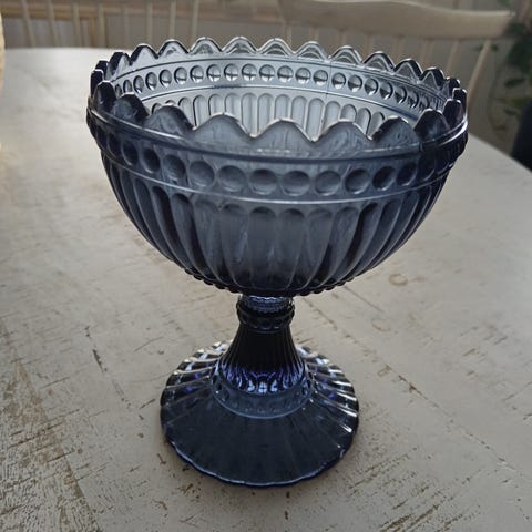 Myydään koboltinsininen mariskooli. Pohjassa 2 pientä riksua. Muuten siisti ja ehjä.