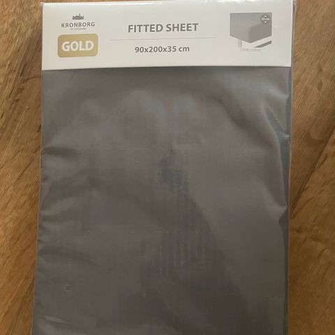 Kronborgin käyttämätön uusi 120x180 100 % puuvillainen muotoonommeltu lakana eli sijauslakana. Vaalean harmaa.