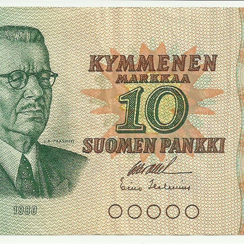Suomen Pankin 20 markan seteli 1993 LA No 223185007. Setelissä on etupuolella muotokuva Väinö Linna ja arvomerkintä 20, taustapuolella kaupunkimaisema, tekstit suomeksi ja ruotsiksi sekä arvomerkintä 20. Sopii esimerkiksi keräilykäyttöön tai rekvisiittaan. Pystytaitos hinta 3.50 e posti 2.50 e
