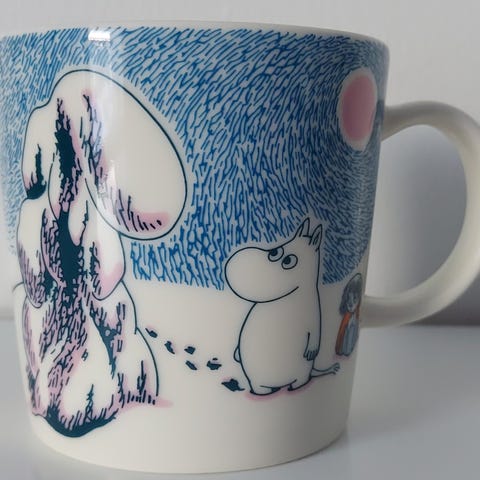 Tykkylumi muumimuki+kulho. Uusi setti tarroilla. Kulkeutuu satunnaisesti Kuopioon.