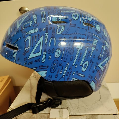 Salomon lasten laskettelukypärä/talviurheilukypärä. Koko 53-56cm. Säätö takana ja leukahihnassa. Pinnassa näkyy käytön jälkeä, lipasta lähtenyt osin pinkki lakkaus, sisävuoret ehjät ja siistit. Alkuperäinen laatikko mukaan.