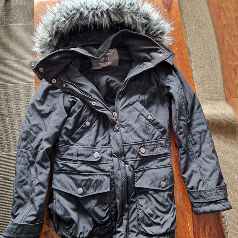 Esprit naisten tummansininen untuvatakki, koko 38. Takissa on irrotettavalla tekoturkisreunuksella varustettu huppu, korkea kaulus, etutaskut ja kiristettävä vyö vyötäröllä. Kiinnitys vetoketjulla ja napeilla. Hyvä käytetty kunto, lämmin talvitakki. Pesun jäljiltä.