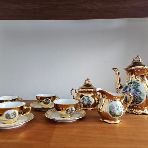 Myydään, GERMANY -HUNGARY COBALT BLUE ja GOLD ZCOLNAY PEC З 1950 Luvun, kaunis posliini teesetti 6-lle h-lle