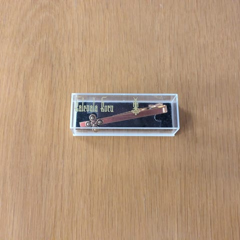 Hannunvaakuna solmioneula. Kalevala koru. Pronssia. Solmioneula on kuin uusi: ei ole kertaakaan käytetty, ainoastaan rasiassaan säilytetty kaikki nämä vuosikymmenet. Lisätietoja ja -kuvia annetaan, jos tarvitaan. Postitan mieluusti.