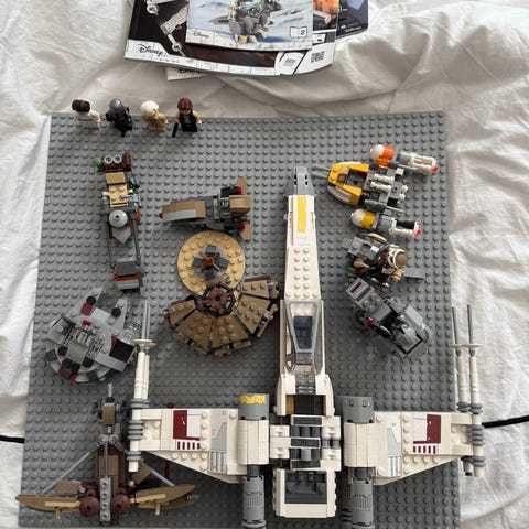 Erä Star Wars aiheisia Legoja, ohjeita ja kirja.