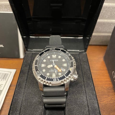Myyn hienon Citizen Promaster -sukelluskellon automaattikoneistolla. Takuukortti leimattu 06/25, joten kahden vuoden takuuta 06/27 saakka. Mukaan tulee kaikki mitä uutenakin (boksi, rannekkeen jatkopalat). Kunto hyvä, ainoastaan rannekkeen lukossa pientä hiusnaarmua.