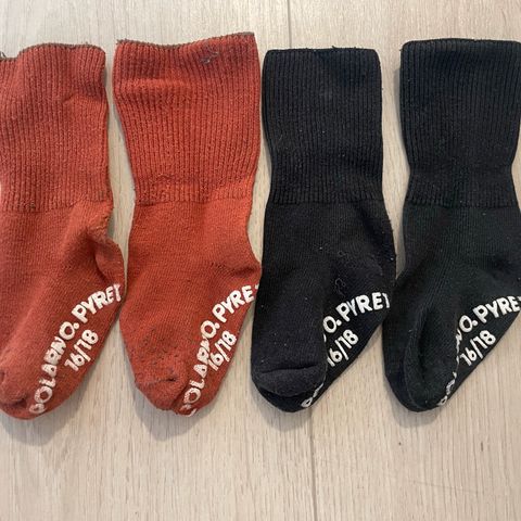 Ylärivin sukat siistejä käytettyjä Pop-merkin sukkia kokoa 16/18. Alarivissä Moomin-sukkia jotka samaa kokoluokkaa vaikka merkintä isompi.