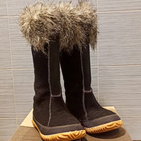Uudet, käyttämättömät nilkkurimalliset Sorelit. Hauska malli, jossa yhdistetty kumia ja huopaa.