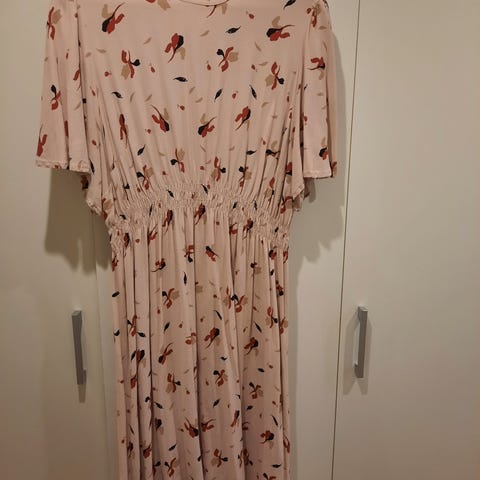 Vaaleanpunainen kukallinen juhlamekko, koko XL, ehjä ja puhdas. Nouto Turusta tai Toridiili.