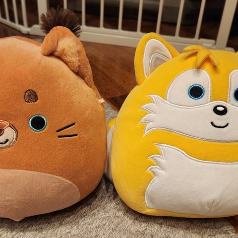 Kuvanmukaiset käytetyt mutta siistikuntoiset sonic pikachu ja spyro pehmolelut