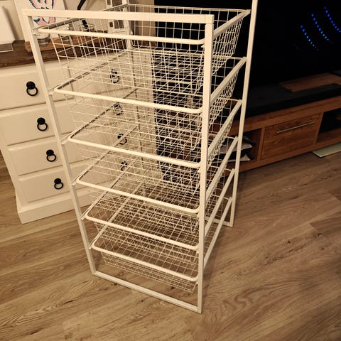 Säilytys kokonaisuus,kuin uudet. Noin puolivuotta olleet käytössä. Näitä löytyy kaksi,voidaan laittaa päällekkäin, mukana kiinnitys palat.