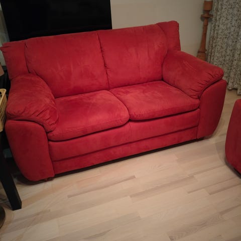 Siisti konjakin värinen alkantara kankainen 3 istuttava sohva. Leveys 210, syvyys 80 cm. Irrotettavat istuin tyynyt ja selkänojat. Iskusta aikoinaan ostettu laatu sohva.