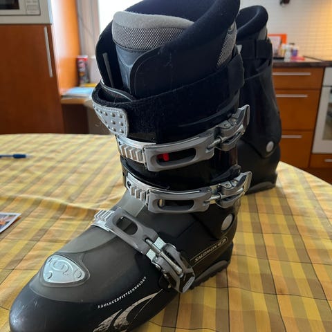 Sukset olleet aktiivisessa käytössä yhdellä laskijalla. Suksissa on kulumaa.
