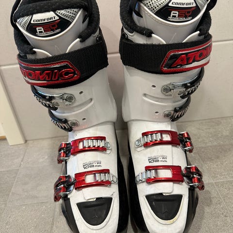 Monot ovat kaksisolkiset, joissa on leveät kiristysremmit ja säädettävät soljet istuvuuden säätöön. Kuori on musta, jossa punaisia yksityiskohtia ja Atomic-logo. Sisäkenkä on pehmustettu ja varustettu vetolenkeillä pukemisen helpottamiseksi. Pohjassa on uritettu kumiosa kävelyä varten.