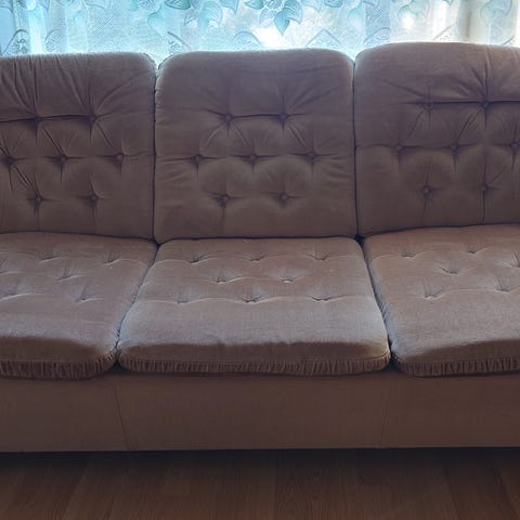 Hyvässä kunnossa oleva vuodesohva. Korkeus 77cm ja leveys 214cm.