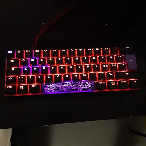 RGB valoja pystyy itse vaihtamaan oman mielen mukaan sovelluksen kautta. Näppäimistössä Kailh Silver Speed- kytkimet.