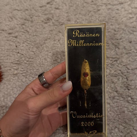 Räsänen Millennium keräilyuistin, juhlamalli vuodelta 2000. Uistin on 24 karaatin kullalla päällystetty ja pakattu alkuperäiseen koteloonsa. Suunniteltu kalastukseen, mutta sopii myös keräilyesineeksi tai lahjaksi kalastuksesta kiinnostuneelle. Suomen lippu ja vuosiluku 2000 merkitty pakkaukseen kuten kuvassa näkyy. Käyttämätön, mutta kotelo on hieman naarmuuntunut, joten kunto sen takia ”vain” hyvä.